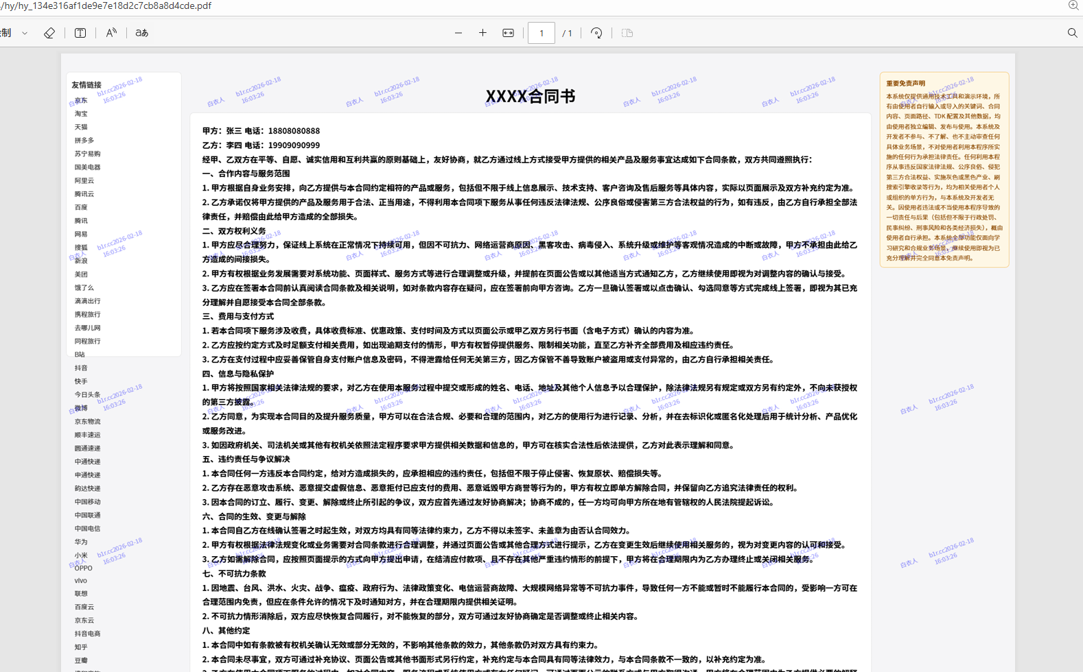 - 合同在线生成签署系统|支持 PDF 合约、甲乙方信息动态填充、积分授权